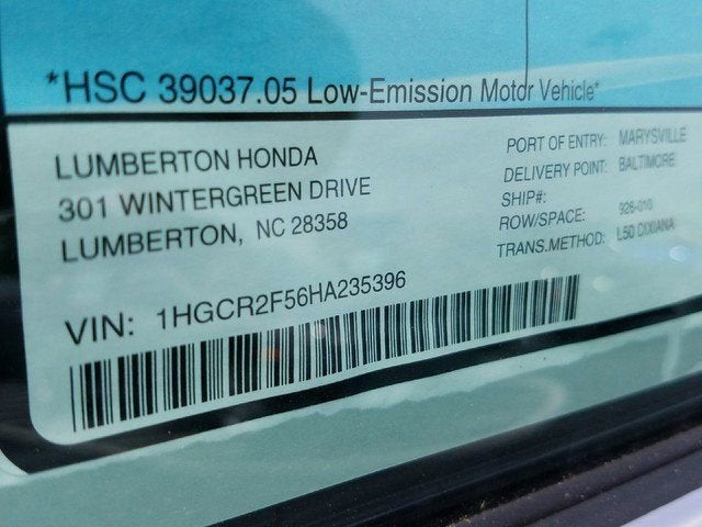 - Vehicle Name: Honda Accord Sedan