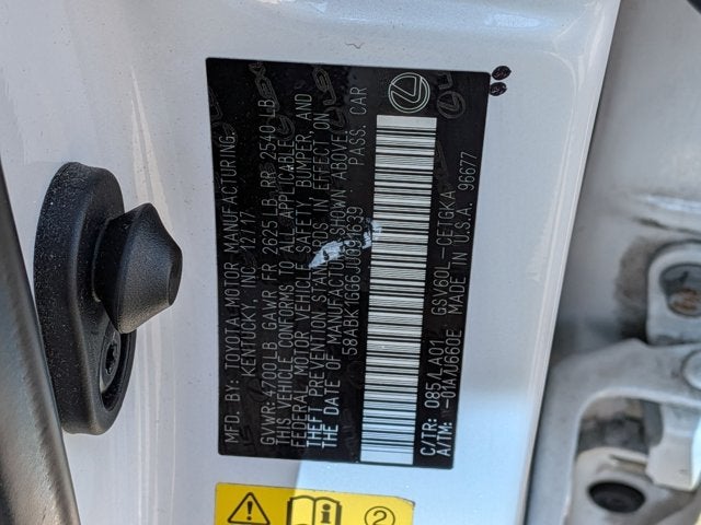 This vehicle comes equipped with : Parchment Artificial Leather, 10-Way Power Adjustable Front Seats, 4-Wheel Disc Brakes, 8 Speakers, ABS brakes, Air Conditioning, Alloy wheels, AM/FM radio: SiriusXM, Anti-whiplash front head restraints, Auto High-beam Headlights, Auto-dimming door mirrors, Auto-dimming Rear-View mirror, Automatic temperature control, Backup Monitor, Brake assist, Bumpers: body-color, CD player, Compass, Delay-off headlights, Driver door bin, Driver vanity mirror, Dual front impact airbags, Dual front side impact airbags, Electronic Stability Control, Emergency communication system: Lexus Enform w/Safety Connect, Exterior Parking Camera Rear, Four wheel independent suspension, Front anti-roll bar, Front Bucket Seats, Front Center Armrest, Front dual zone A/C, Front fog lights, Front reading lights, Fully automatic headlights, Garage door transmitter: HomeLink, Illuminated entry, Knee airbag, Leather Shift Knob, Low tire pressure warning, Occupant sensing airbag, Outside temperature display, Overhead airbag, Overhead console, Panic alarm, Passenger door bin, Passenger vanity mirror, Perforated NuLuxe Seat Trim, Power door mirrors, Power driver seat, Power passenger seat, Power steering, Power windows, Radio data system, Radio: AM/FM/CD Display Audio, Rain sensing wipers, Rear anti-roll bar, Rear reading lights, Rear seat center armrest, Rear side impact airbag, Rear window defroster, Remote keyless entry, Security system, Speed control, Speed-sensing steering, Steering wheel mounted audio controls, Tachometer, Telescoping steering wheel, Tilt steering wheel, Traction control, Trip computer, Turn signal indicator mirrors, Variably intermittent wipers, and Wheels: 17" x 7" JJ Split 10-Spoke Aluminum Alloy.