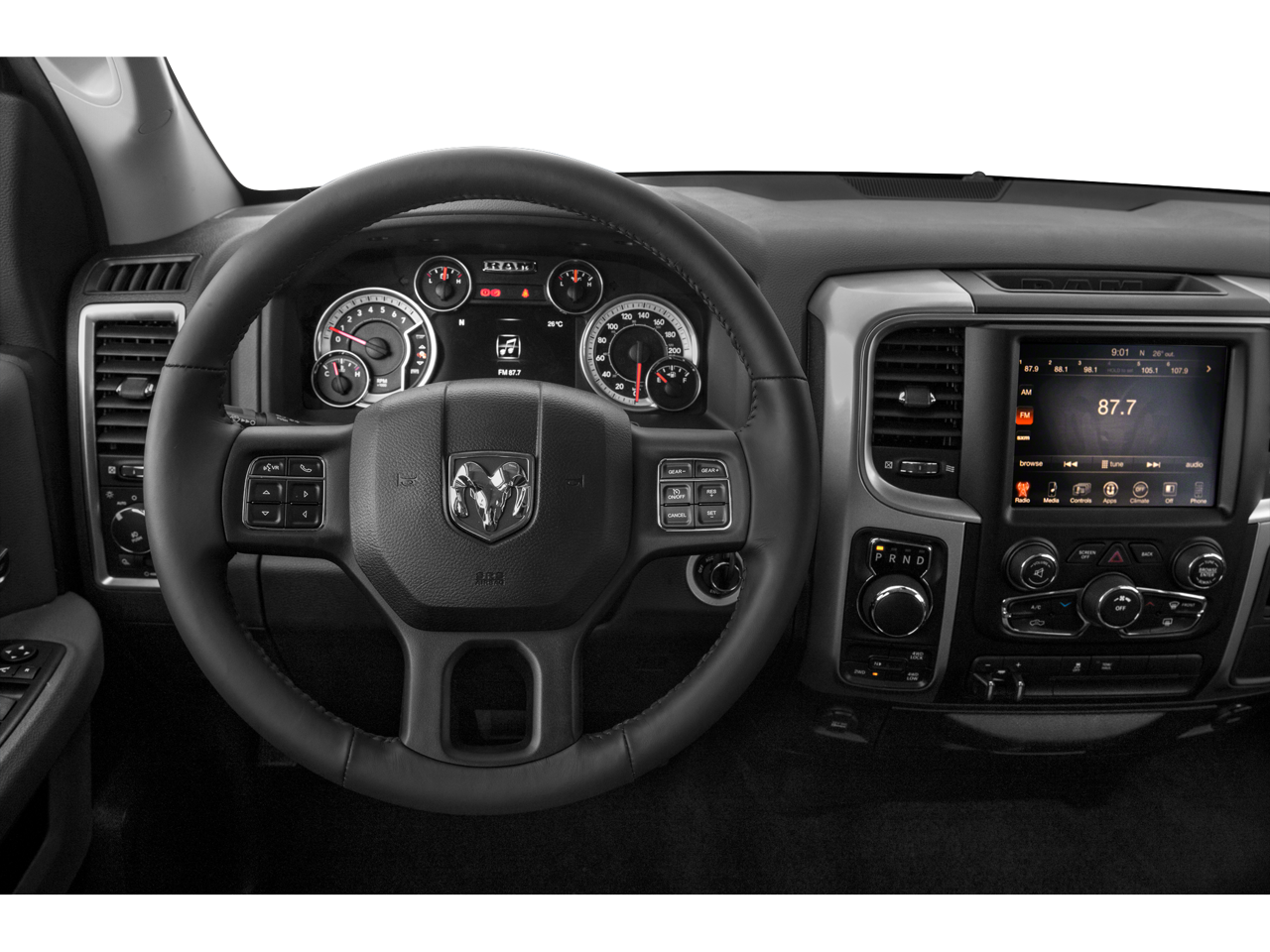 - QUICK ORDER PACKAGE 26U HARVEST -inc: Engine: 5.7L V8 HEMI MDS VVT Transmission: 8-Speed Automatic (8HP70) Harvest Edition Google Android Auto SiriusXM Traffic Plus SiriusXM Satellite Radio No satellite coverage in Hawaii or Alaska USB Host Flip HD Radio Media Hub (2 USB AUX) 1-Yr SiriusXM Guardian Trial 5-Year SiriusXM Travel Link Service GPS Navigation 5-Year SiriusXM Traffic Service SiriusXM Travel Link 1 Year Sirius Travel Link Service 8.4 Touchscreen Display Apple CarPlay Rear View Auto Dim Mirror Leather Wrapped Steering Wheel Power Multi-Function F/Away Mirrors Rear Dome w/On/Off Switch Lamp Underhood Lamp Front Suspension Skid Plate LED Bed Lighting Glove Box Lamp Black Tubular Side Steps Auto Dim Exterior Mirrors 4x4 Decal MOPAR Rear Bumper Step Extension Security Alarm Electroluminescent Instrument Cluster Overhead Console w/Garage Door Opener Universal Garage Door Opener Bright Grille Remote Start System Exterior Mirrors w/Supplemental