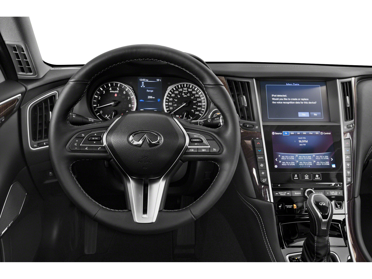 - Radio: INFINITI InTouch w/Navigation -inc: AM/FM/HD and CD, 16 speakers Bose Performance Series audio w/Bose Centerpoint simulated surround, navigation w/lane guidance, 3D building graphics, premium traffic and MapCare, voice recognition for navigation functions, including 1-shot voice destination entry, Apple CarPlay, Siri Eyes Free, Android Auto, Bluetooth® hands-free phone system w/hand-free text messaging assistant, steaming audio via Bluetooth®, 2 illuminated USB connection ports (1 type A, 1 type C), auxiliary audio input, SiriusXM radio w/advanced audio features w/3-month complimentary trial and Wi-Fi hotspot