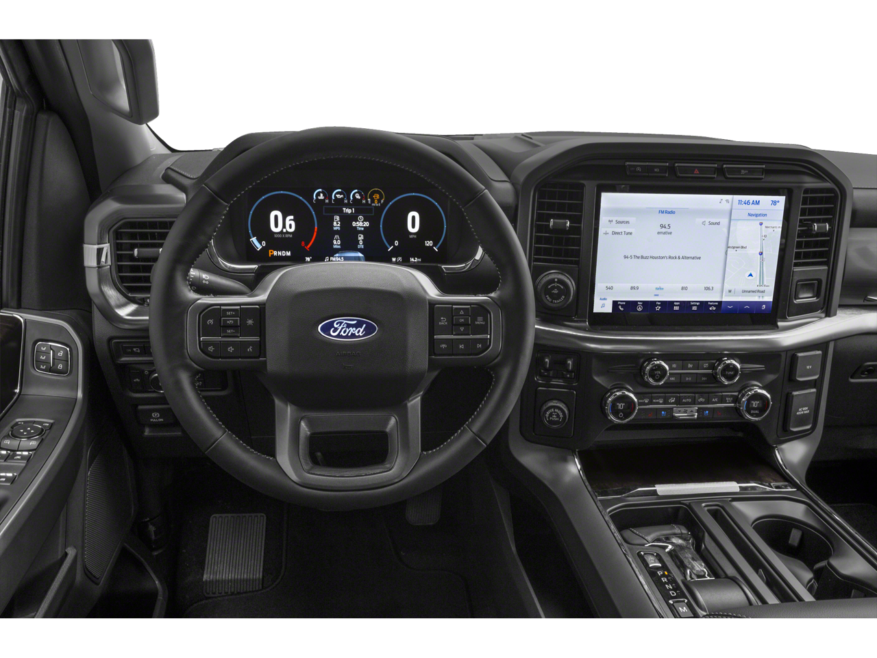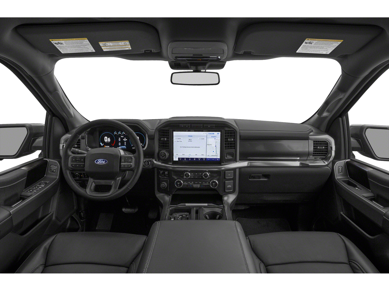 This vehicle comes equipped with Equipment Group 502A High (2nd Row Heated Seats, Heated Steering Wheel, Leather-Trimmed Bucket Seats, LED Projector w/Dynamic Bending Headlamps, Onboard 400W Outlet, Power Glass Sideview Mirr w/Chrome Skull Caps, Power Tilt/Telescoping Steering Column w/Memory, Radio: B&O Sound System by Bang & Olufsen, Rain-Sensing Wipers, Universal Garage Door Opener, and Wireless Charging Pad), Ford Co-Pilot360 Assist 2.0 (DISC) (Connected Built-In Navigation, Evasive Steering Assist, Intelligent Adaptive Cruise Control w/Stop & Go, Intersection Assist, and Speed Sign Recognition), Lariat Chrome Appearance Package (Chrome Single-Tip Exhaust), Lariat Sport Appearance Package (Accent-Color Angular Step Bars, Body-Color Front & Rear Bumpers, Box Side Decals, Dark 2-Bar & 1 Minor Bar Style Grille, and Wheels: 18" 6-Spoke Machined Aluminum), Trailer Tow Package (Class IV Trailer Hitch Receiver, Integrated Trailer Brake Controller, and Pro Trailer Backup Assist), 4WD, 18" Machined-Aluminum Wheels, 360 Degree Camera, 4-Wheel Disc Brakes, 7 Speakers, ABS brakes, Adjustable pedals, Air Conditioning, Alloy wheels, AM/FM radio: SiriusXM with 360L, Auto High-beam Headlights, Auto Start-Stop Removal, Auto-dimming door mirrors, Auto-dimming Rear-View mirror, Automatic temperature control, Brake assist, Bumpers: chrome, Compass, Delay-off headlights, Driver door bin, Driver vanity mirror, Dual front impact airbags, Dual front side impact airbags, Electronic Stability Control, Emergency communication system: SYNC 4 911 Assist, Extended Range 36 Gallon Fuel Tank, Exterior Parking Camera Rear, Front anti-roll bar, Front Center Armrest w/Storage, Front dual zone A/C, Front fog lights, Front reading lights, Front wheel independent suspension, Fully automatic headlights, Heated door mirrors, Heated front seats, Illuminated entry, Leather-Trimmed 40/20/40 Front Seat, LED Sideview Mirror Spotlights, Low tire pressure warning, Memory seat, Occupant sensing airbag, Outside temperature display, Overhead airbag, Overhead console, Panic alarm, Passenger door bin, Passenger vanity mirror, Pedal memory, Power door mirrors, Power driver seat, Power passenger seat, Power steering, Power windows, Radio data system, Radio: AM/FM SiriusXM w/360L, Radio: B&O Unleashed Sound System by Bang & Olufsen, Rear reading lights, Rear seat center armrest, Rear step bumper, Rear window defroster, Remote keyless entry, Security system, Speed control, Speed-sensing steering, Split folding rear seat, Steering wheel mounted audio controls, SYNC 4 w/Enhanced Voice Recognition, Tachometer, Telescoping steering wheel, Tilt steering wheel, Traction control, Trip computer, Turn signal indicator mirrors, Twin Panel Moonroof, Variably intermittent wiper