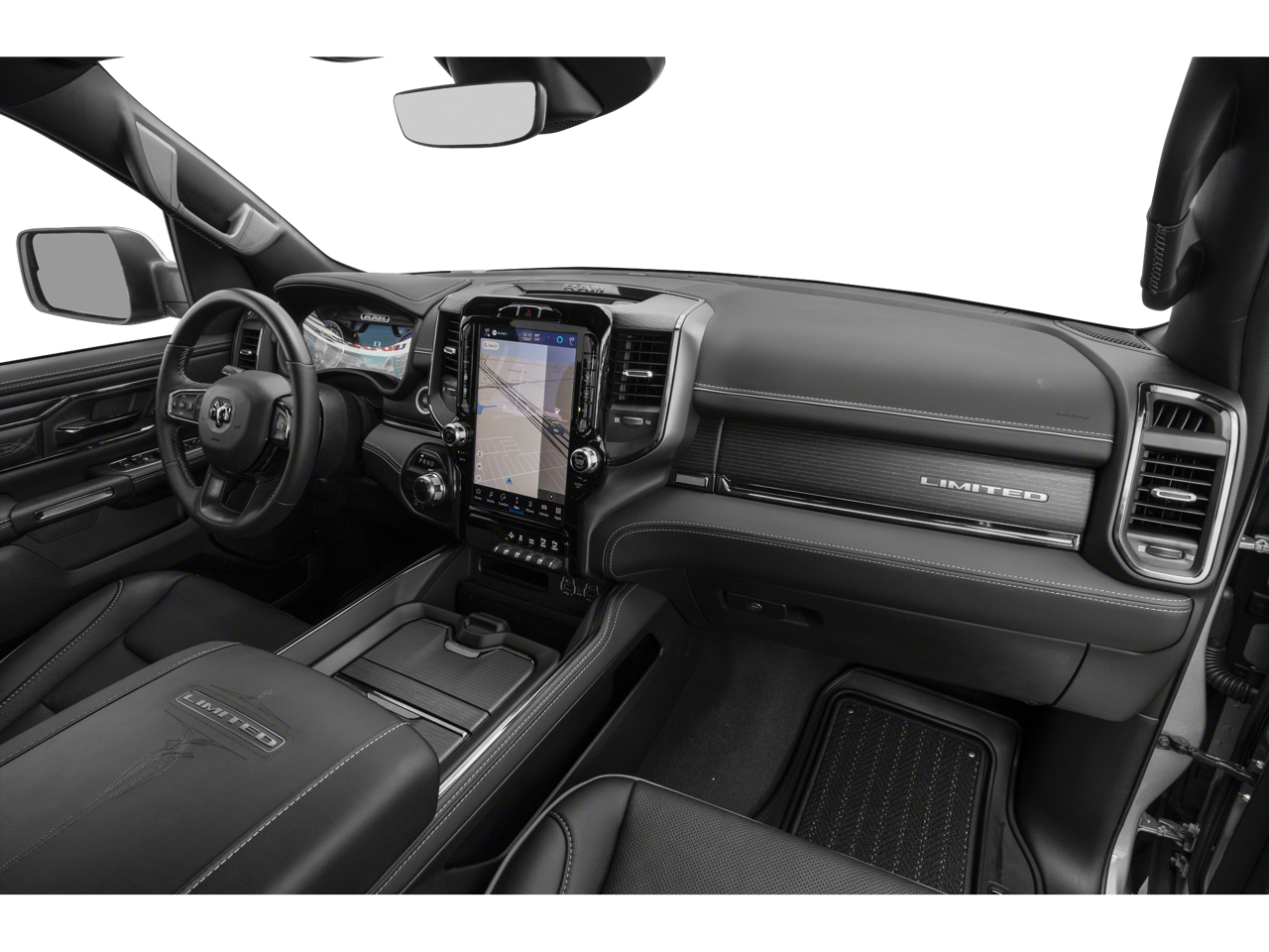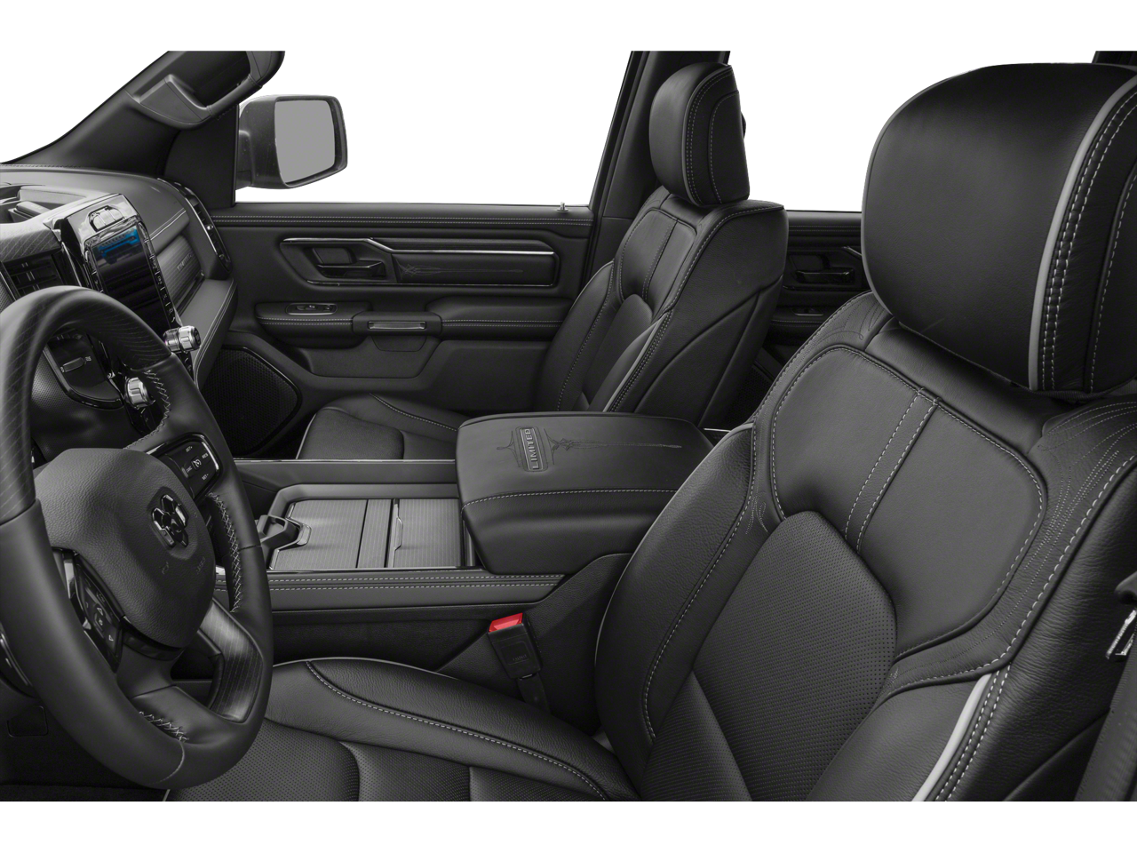 This vehicle comes equipped with : Quick Order Package 27M Limited, 10 Speakers, 3.21 Rear Axle Ratio, 4 Way Front Headrests, 4-Wheel Disc Brakes, 48V Belt Starter Generator, ABS brakes, Active Noise Control System, Adjustable pedals, Air Conditioning, Alloy wheels, AM/FM radio: SiriusXM with 360L, Apple CarPlay/Android Auto, Audio memory, Auto High-beam Headlights, Auto-dimming door mirrors, Auto-Dimming Exterior Driver Mirror, Auto-Dimming Exterior Passenger Mirror, Auto-dimming Rear-View mirror, Auto-leveling suspension, Automatic temperature control, Bodyside moldings, Brake assist, Bucket Seats, Bumpers: chrome, Chrome Exterior Mirrors, Compass, Convex Wide-Angle Mirror Insert, Delay-off headlights, Driver door bin, Driver Seat Memory, Driver vanity mirror, Dual front impact airbags, Dual front side impact airbags, Dual Rear Exhaust w/Bright Tips, Electronic Stability Control, Exterior Mirrors Courtesy Lamps, Exterior Mirrors w/Heating Element, Exterior Mirrors w/Memory, Exterior Mirrors w/Supplemental Signals, Front anti-roll bar, Front Bucket Seats, Front Center Armrest w/Storage, Front dual zone A/C, Front fog lights, Front License Plate Bracket, Front reading lights, Front Seat Back Map Pockets, Front wheel independent suspension, Full Length Premium Floor Console, Fully automatic headlights, Garage door transmitter, Genuine wood console insert, Genuine wood dashboard insert, Genuine wood door panel insert, Heated door mirrors, Heated Front Seats, Heated front seats, Heated rear seats, Heated Second Row Seats, Heated Steering Wheel, Heated steering wheel, Heavy-Duty Engine Cooling, HEMI Badge, Illuminated entry, Leather steering wheel, Low tire pressure warning, Memory seat, Navigation System, Occupant sensing airbag, Outside temperature display, Overhead airbag, Overhead console, Panic alarm, ParkView Rear Back-Up Camera, Passenger door bin, Passenger vanity mirror, Pedal memory, Power 4-Way Driver Lumbar Adjust, Power 4-Way Passenger Lumbar Adjust, Power 8-Way Driver & Passenger Seats, Power door mirrors, Power driver seat, Power passenger seat, Power steering, Power windows, Power-Folding Mirrors, Premium Leather Trimmed Bucket Seats, Radio data system, Radio: Uconnect 5 Nav w/12.0" Display, Rain sensing wipers, Rear 60/40 Folding Split Recline Seat, Rear anti-roll bar, Rear seat center armrest, Rear step bumper, Rear window defroster, Remote keyless entry, Security system, Speed control, Split folding rear seat, Steering wheel mounted audio controls, Tachometer, Telescoping steering wheel, Tilt steering wheel, Traction control, Trip computer, Turn signal indicator mirrors, Variably intermittent wipers, Ventilated Front Seats, Ventilated front seats, Voltmeter, and Wheels: 20" x 9" Aluminum Painted/Polished.