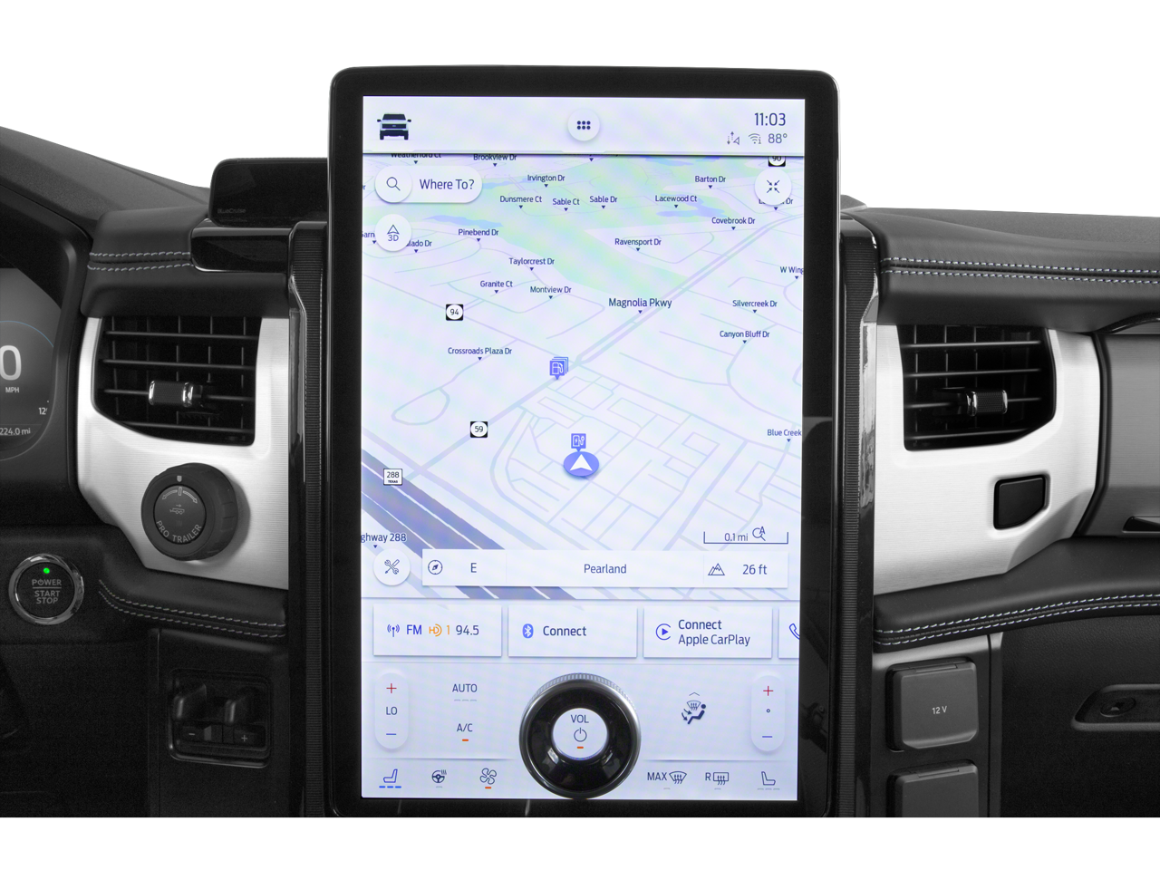 This vehicle comes equipped with: Equipment Group 710A Standard, 14 Speakers, 4-Wheel Disc Brakes, ABS brakes, Adjustable pedals, Air Conditioning, Alloy wheels, Auto High-beam Headlights, Auto tilt-away steering wheel, Auto-dimming door mirrors, Auto-dimming Rear-View mirror, Automatic temperature control, Brake assist, Bumpers: body-color, Compass, Delay-off headlights, Driver door bin, Driver vanity mirror, Dual front impact airbags, Dual front side impact airbags, Electronic Stability Control, Emergency communication system: SYNC 4 911 Assist, Four wheel independent suspension, Front anti-roll bar, Front Bucket Seats, Front Center Armrest, Front dual zone A/C, Front License Plate Bracket, Front reading lights, Fully automatic headlights, Genuine wood console insert, Genuine wood door panel insert, Heated door mirrors, Heated front seats, Heated rear seats, Heated steering wheel, Illuminated entry, Illuminated running boards, Knee airbag, Low tire pressure warning, Memory seat, Mobile Power Cord (120/240V), Navigation system: Connected Navigation, Occupant sensing airbag, Outside temperature display, Overhead airbag, Overhead console, Panic alarm, Passenger door bin, Passenger vanity mirror, Pedal memory, Power door mirrors, Power driver seat, Power moonroof, Power passenger seat, Power steering, Power windows, Premium Nirvana Leather Bucket Seats, Radio data system, Radio: B&O Unleashed Sound System by Bang & Olufsen, Rain sensing wipers, Rear anti-roll bar, Rear reading lights, Rear seat center armrest, Rear step bumper, Rear window defroster, Remote keyless entry, Security system, Speed control, Speed-sensing steering, Split folding rear seat, Steering wheel memory, Steering wheel mounted audio controls, SYNC 4A w/Enhanced Voice Recognition, Telescoping steering wheel, Tilt steering wheel, Traction control, Trip computer, Turn signal indicator mirrors, Variably intermittent wipers, Ventilated front seats, and Wheels: 22 Bright Machined w/Ebony Black.