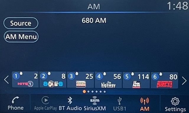 - Radio: AM/FM w/RDS/MP3/Aux-In -inc: 6 speakers plus 2 tweeters in A-pillar, 8" color display w/multi-touch control, streaming audio via Bluetooth®, Bluetooth® hands-free phone system, hands-free text messaging assistant, Siri Eyes Free, Google Assistant voice recognition w/Apple CarPlay and Android Auto, NissanConnect, (1) front USB connection port (type A), (1) additional front USB (type C), (1) charge-only USB (type A) center console and SiriusXM radio w/advanced audio features