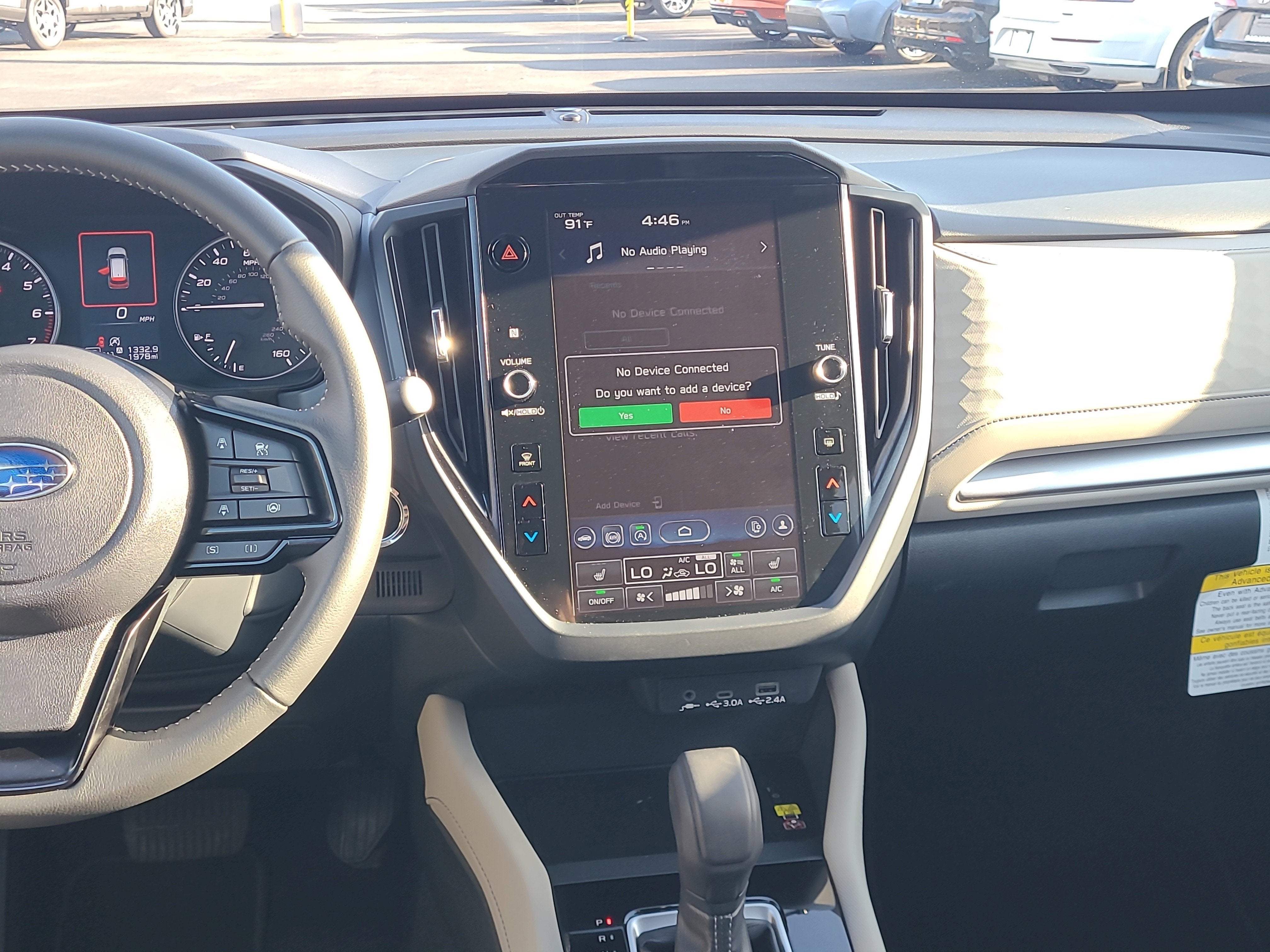 - Radio: Subaru 11.6" Multimedia Plus System -inc: valet mode, integrated center information display, AM/FM stereo HD Radio, multi-touch gesture high resolution display screen, voice activated controls, Bluetooth® audio streaming and hands-free phone connectivity w/SMS text messaging connectivity (refer to subaru.com for cell phone compatibility), iPod control capability, SiriusXM w/360L (4 months free trial/subscription required after), SiriusXM Travel Link (3 years free trial/subscription required after), smartphone integration for Android Auto and Apple CarPlay w/full screen view and wireless connection, USB and Over The Air (OTA) audio system update, steering wheel control switches for audio and Bluetooth®, 6 speakers, 3.5mm auxiliary input jack and roof mounted audio and satellite antenna
