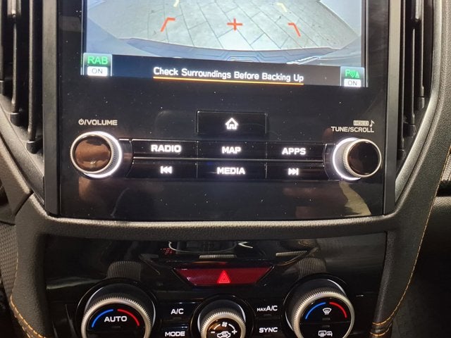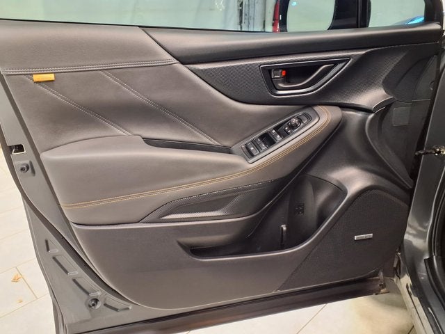 This vehicle comes equipped with: harman/kardon Audio & Power Rear Gate (Power Rear Gate and Radio: Subaru 8.0 Multimedia Navigation System), 4-Wheel Disc Brakes, 6 Speakers, ABS brakes, Air Conditioning, Alloy wheels, AM/FM radio: SiriusXM, Anti-whiplash front head restraints, Auto High-beam Headlights, Auto-Dimming Exterior Mirror w/Approach Light, Auto-Dimming Mirror w/Compass & HomeLink, Automatic temperature control, Brake assist, Bumpers: body-color, Driver door bin, Driver vanity mirror, Dual front impact airbags, Dual front side impact airbags, Electronic Stability Control, Emergency communication system: MySubaru Safety (3-year free trial), Exterior Parking Camera Rear, Four wheel independent suspension, Front anti-roll bar, Front Bucket Seats, Front Center Armrest, Front dual zone A/C, Front fog lights, Front reading lights, Fully automatic headlights, Heated door mirrors, Heated Front Bucket Seats, Heated front seats, Illuminated entry, Knee airbag, Leather Shift Knob, Leather steering wheel, Low tire pressure warning, Occupant sensing airbag, Outside temperature display, Overhead airbag, Overhead console, Panic alarm, Passenger door bin, Passenger vanity mirror, Power door mirrors, Power driver seat, Power moonroof: Panoramic, Power steering, Power windows, Radio data system, Radio: Subaru 8.0 Multimedia Plus System, Rear anti-roll bar, Rear Bumper Cover, Rear seat center armrest, Rear Seatback Protector - Wilderness, Rear window defroster, Rear window wiper, Remote keyless entry, Security system, Speed control, Speed-sensing steering, Split folding rear seat, Spoiler, Steering wheel mounted audio controls, Tachometer, Telescoping steering wheel, Textured StarTex Upholstery, Tilt steering wheel, Traction control, Trip computer, Turn signal indicator mirrors, Variably intermittent wipers, and Wheels: 17 x 7.0 J Matte Black Finish Alum-Alloy.