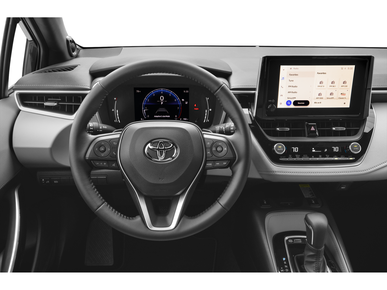 This Vehicle is nicely equipped with the following features: 4-Wheel Disc Brakes, 8 Speakers, ABS brakes, Air Conditioning, Alloy wheels, AM/FM radio: SiriusXM, Auto High-beam Headlights, Automatic temperature control, Brake assist, Bumpers: body-color, Compass, Delay-off headlights, Driver door bin, Driver vanity mirror, Dual front impact airbags, Dual front side impact airbags, Electronic Stability Control, Emergency communication system: Safety Connect (up to 10-year trial subscription), Exterior Parking Camera Rear, Four wheel independent suspension, Front anti-roll bar, Front Bucket Seats, Front Center Armrest, Front dual zone A/C, Front fog lights, Front reading lights, Heated door mirrors, Heated front seats, Heated Sport Front Seats, Illuminated entry, Knee airbag, Leather Shift Knob, Leather steering wheel, Low tire pressure warning, Occupant sensing airbag, Outside temperature display, Overhead airbag, Overhead console, Panic alarm, Passenger door bin, Passenger vanity mirror, Power door mirrors, Power driver seat, Power steering, Power windows, Radio data system, Radio: 8 Toyota Audio Multimedia, Rear anti-roll bar, Rear seat center armrest, Rear side impact airbag, Rear window defroster, Rear window wiper, Remote keyless entry, Security system, SofTex Seat Trim with Fabric Inserts, Speed control, Speed-sensing steering, Split folding rear seat, Spoiler, Steering wheel mounted audio controls, Tachometer, Telescoping steering wheel, Tilt steering wheel, Traction control, Trip computer, Turn signal indicator mirrors, Variably intermittent wipers, and Wheels: 18 Graphite-Colored Alloy.